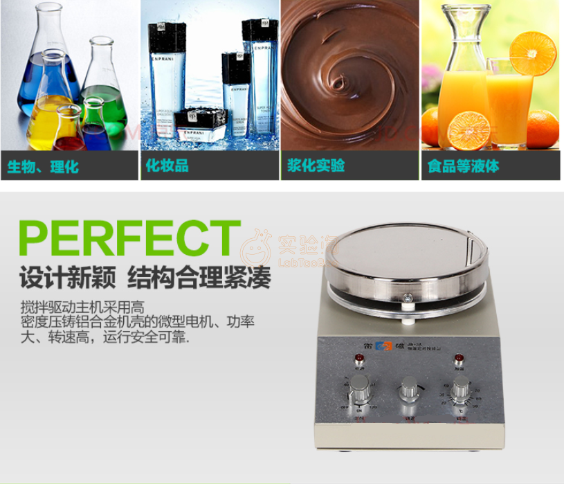 JB系列磁力搅拌器主要以磁力搅拌为主,用户可根据不同的需 求,选择加热恒温或定时加热恒温等不同功能的磁力搅拌器。主要用 于实验室里液态物质的加热搅拌,可广泛适用于工矿企业、医药卫 生、电子科研等单位。