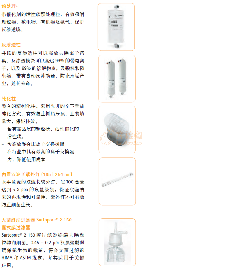 - 可确保更长的下游超纯水系统的耗材寿命
