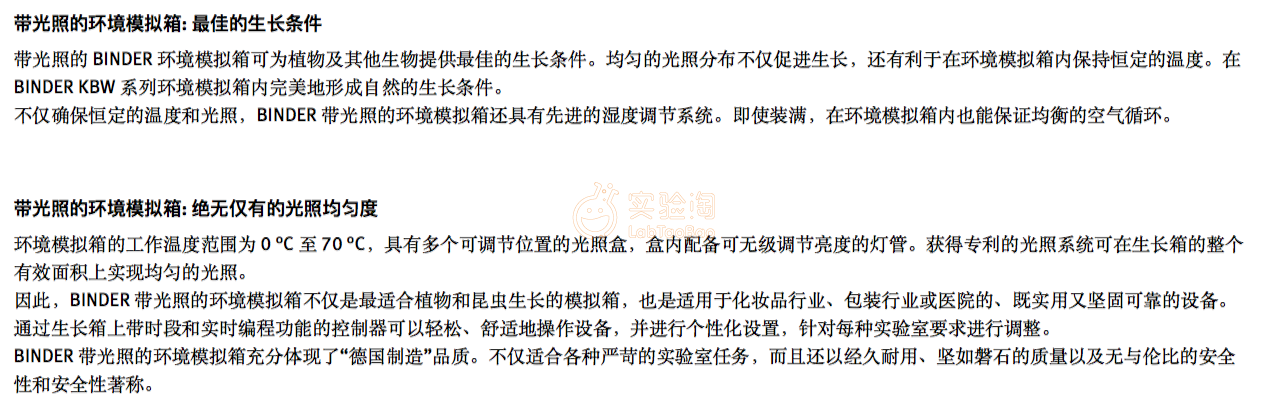 培养箱 Binder 宾德 KBW系列光照植物生长箱 KBW400-230V1 光照功能,内腔预热技术