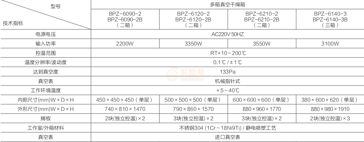 干燥箱 一恒 BPZ多箱真空干燥箱 BPZ-6140-3 三箱 可独立抽真空或加温或注氮气,选配LED照明